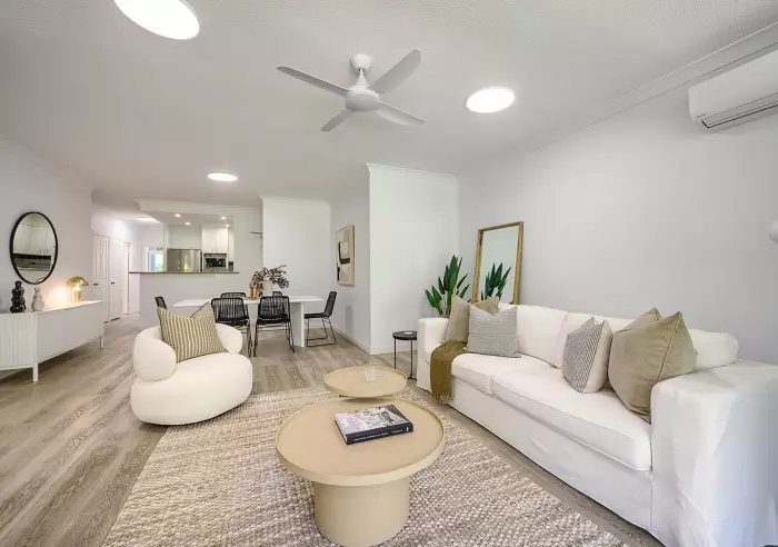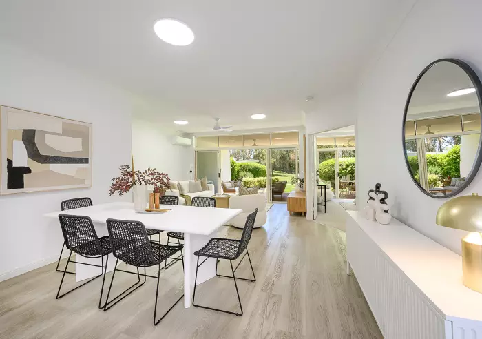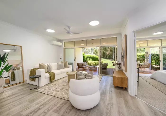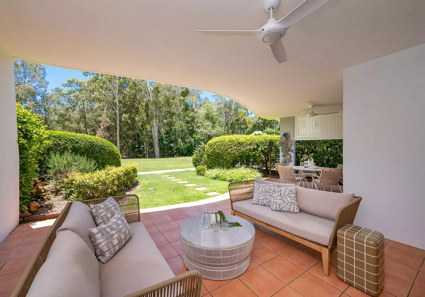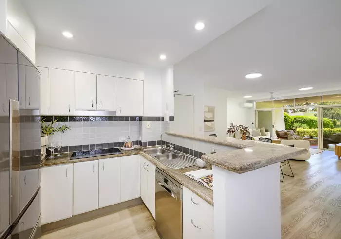 Golf frontage Close to beach Garden apartment Terrace/Paved Outdoor entertainment area Undercover outdoor area Low maintenance Dishwasher Intercom system Split System Air Conditioning Pet friendly NBN ready New carpet Pool Built-in wardrobes