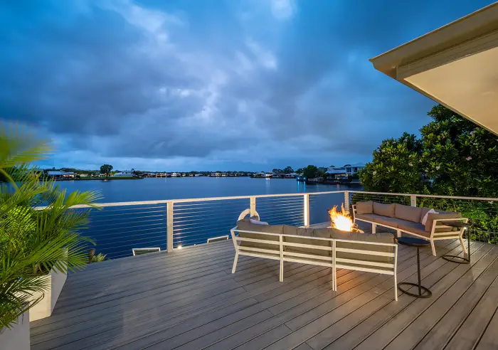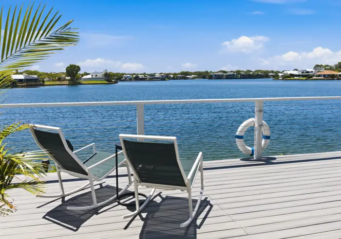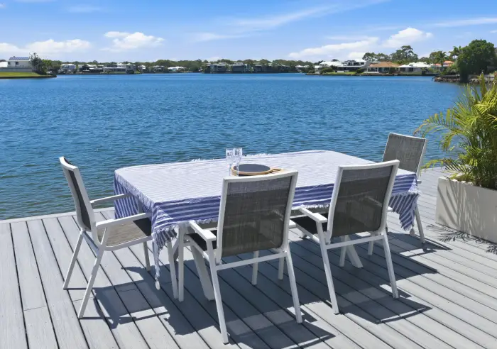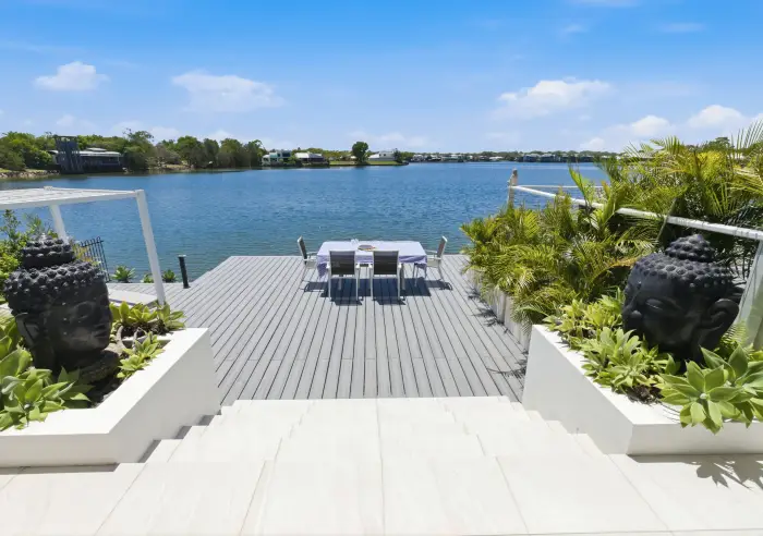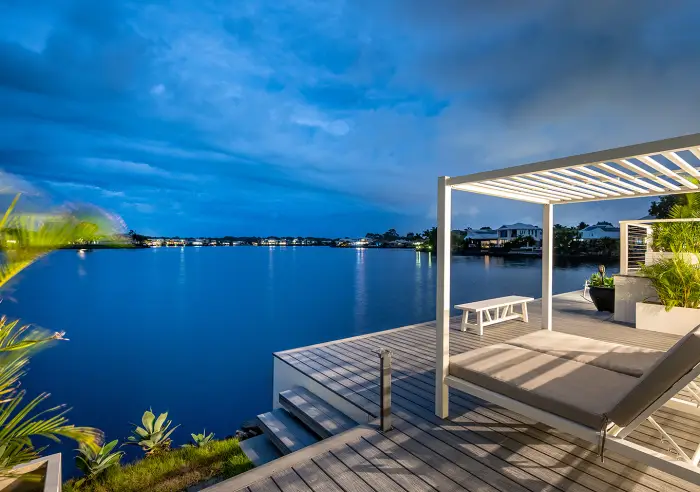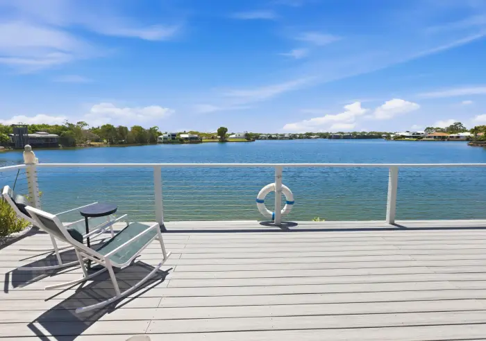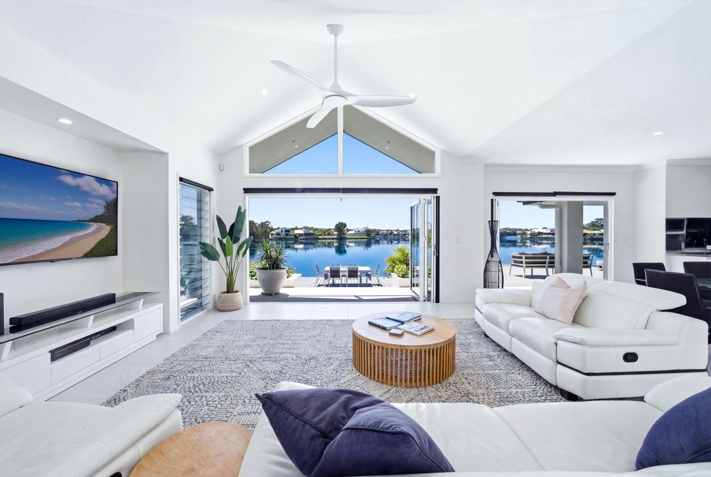 5 Karinya Place takes this privileged lifestyle to another level as the main living area of this magnificent home feels like an island of its own. Almost completely surrounded by water, it is a magic place to entertain a crowd or simply to relax in privacy, with the sparkling waters and the softly gurgling feature fountains of your resort-style pool on one side and the vast expanse of the Twin Waters lagoon on the other.