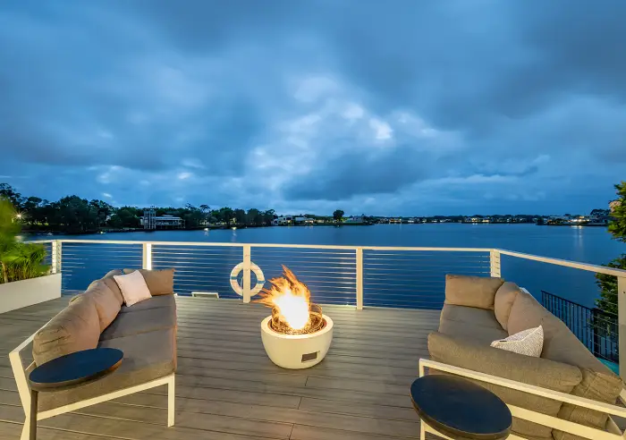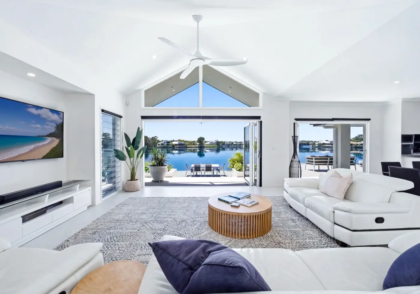 Even with the bi-fold doors closed, the ambience and the scenery are spectacular. All opened up, this living area becomes an irresistible summer pavilion, with gentle summer breezes and panoramic views that get even more breathtaking as you wander out to your lakeside entertaining terraces where the presence of water is immediate and intense as if you were on an ocean cruiser.