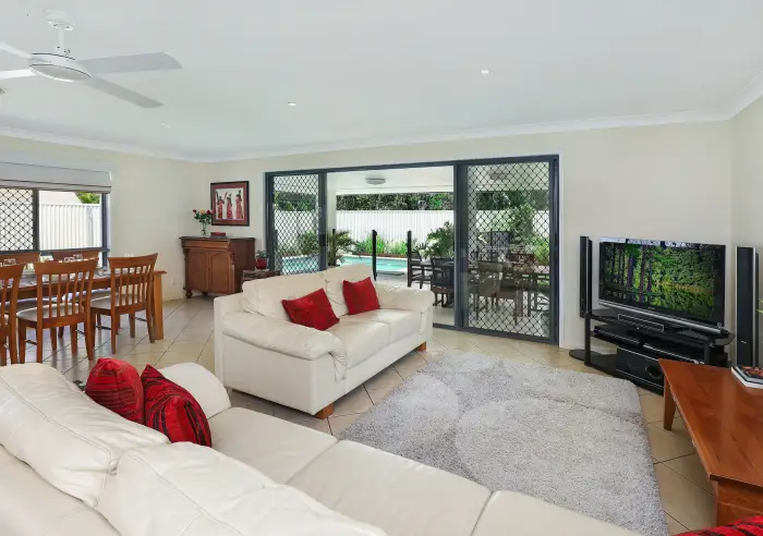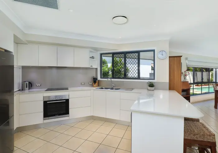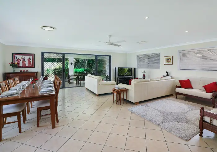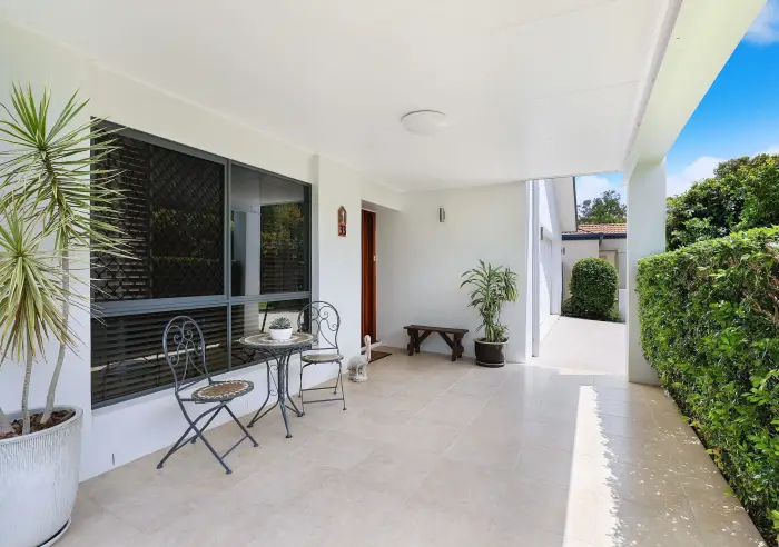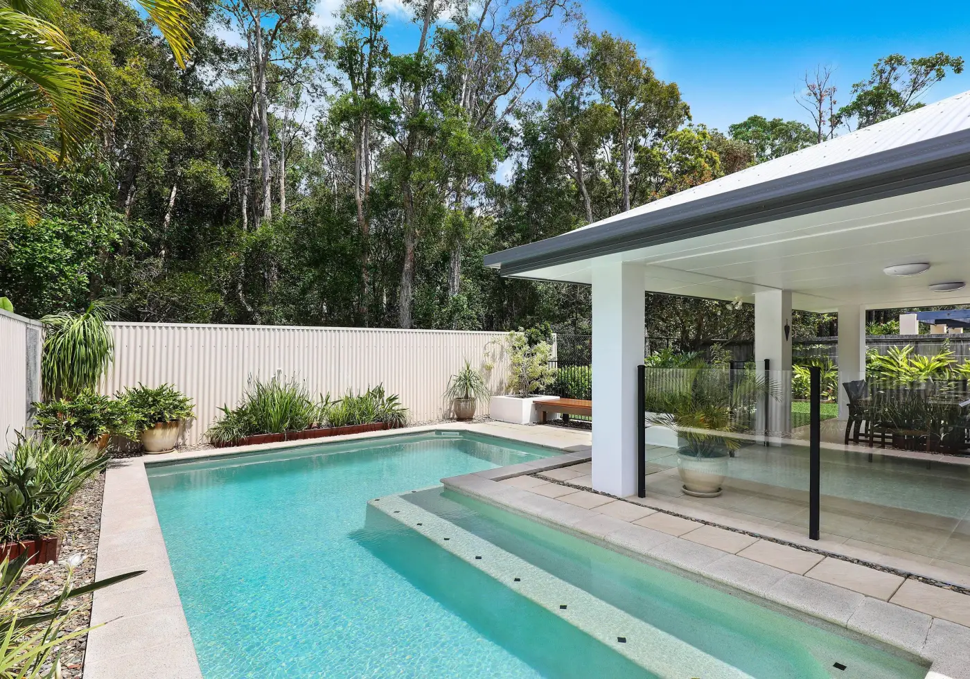 Terrace/Paved Undercover outdoor area Outdoor entertainment area Level Block Close to beach Office nook Ducted Air Conditioning 6.6kW Solar Double lock-up garage Pool Built-in wardrobes Bush backdrop Only 2 neighbours Very private LED lighting Loads of storage Balcony Solid timber flooring in master Alarm System Dishwasher Epoxy garage flooring Eufy security cameras Land size: 542m2 Study